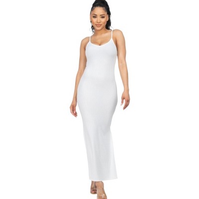 Slickblue Ribbed Knit Long Cami Dress with Side Slits, Women’s Summer Chic Outfit, Weekend Trips, Color Options, S-L