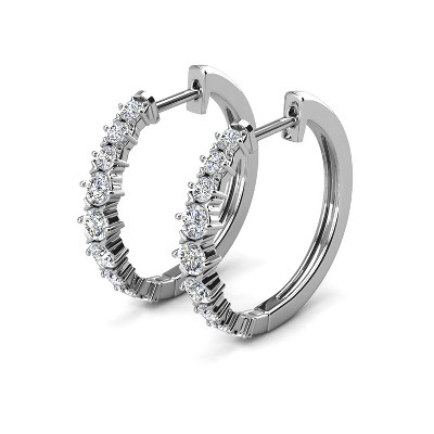 Cate & Chloe Corina 20mm Hoop Earrings 18K White Gold Plated with Swarovski Crystals Dual Row Design for Women 1 Pair