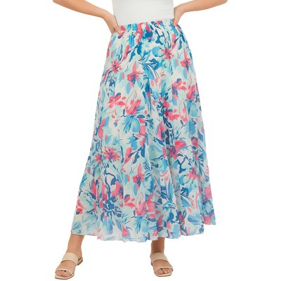 Woman Within Pull-On Elastic Waist Crinkle Printed Skirt