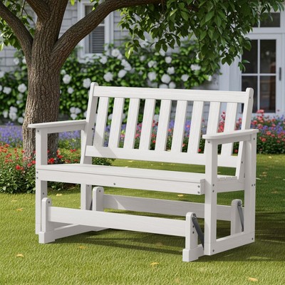 white outdoor glider bench