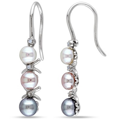 EVERLY JEWELRY | Sterling Silver 4 - 5 MM White, Pink and Grey Cultured Freshwater Pearl and Diamond Drop Earrings