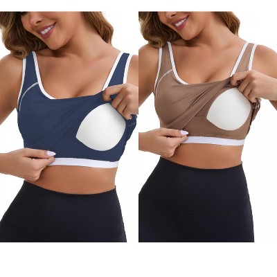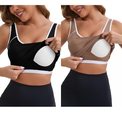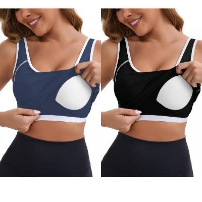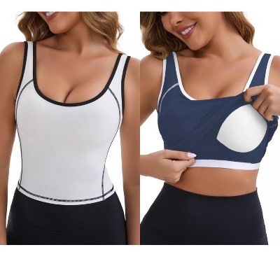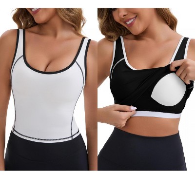 INSPIRE CHIC Women's Wide Straps U-Neck with Padded Push Up Elastic Tight Colorblock Workout Tank 2 Packs