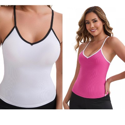 INSPIRE CHIC Women's V-Neck Spaghetti Straps Slim Fit Solid Elastic Athletic Camisoles 2 Packs