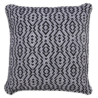 16" Handwoven Cotton Throw Pillow Cover Chevron & Gingham Design Black & White