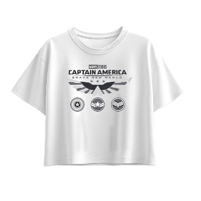 Girls' Captain America Cabnw Icons White Shirt Short Sleeve Boxy Graphic T-Shirt - White - Large