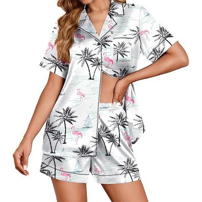 SHESHOW Womens Satin Pajamas Set Button Down Pjs Short Sleeve Shorts 2 Piece Loungewear Sets