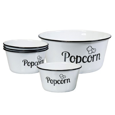 VIP Metal 11 Inch White Popcorn Bowl Set of 5 with Vintage Style