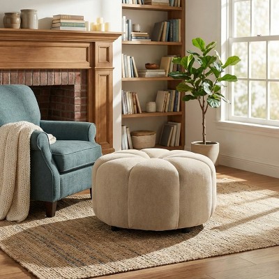 white tufted ottomans