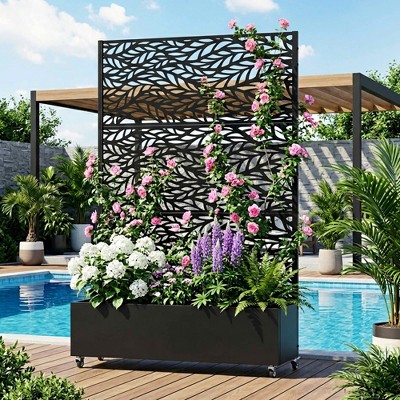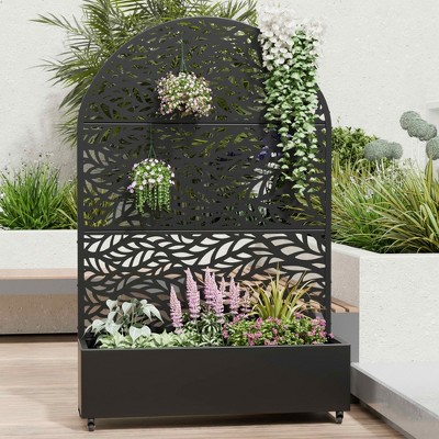 MAYEERTY Black Metal Rectangular Raised Garden Bed with Trellis, 3 Panels 72.05¡Á47.24in Outdoor Iron Planter Box