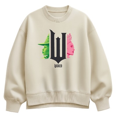 Women's - Wicked - Elphaba And Glinda Side Profiles Oversized Fleece Crew Sweatshirt