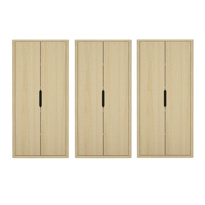 Manhattan Comfort 38" Rivington 5 Shelf Bookcase Cabinet Set of 3 Natural Oak