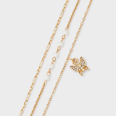 Mixed Chain and Pearl Anklet Set 3pc - Wild Fable™ Gold