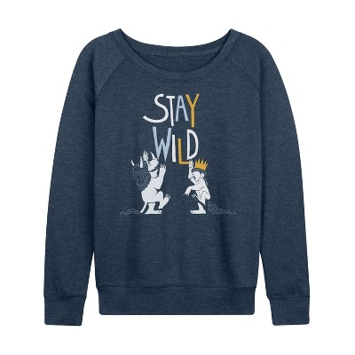 Women's - Where The Wild Things Are - Stay Wild Lightweight French Terry Wide Neck Long Sleeve Graphic Shirt
