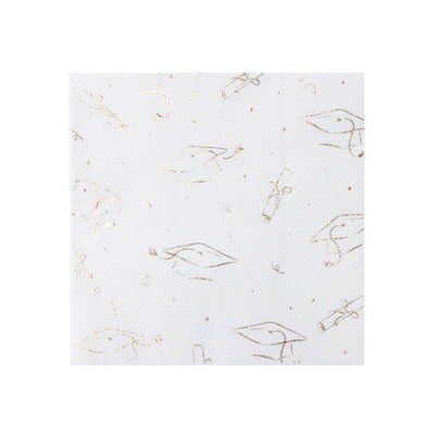 Bonjour Fete 30ct Large White and Gold Graduation Hat Napkins