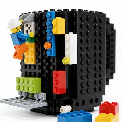 Dronkon Build-on Brick Mug Set with 1 Random Bricks Pack - Cool Creative Coffee Mug Cup for Kids, Men, Dad, Adults, Funny Christmas Gift (Black)