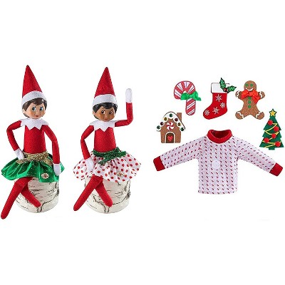 The Elf on the Shelf Outfit Value Pack- 2 Festive Skirts and DIY Ugly Sweater Set with 6 Interchangeable Velcro Christmas Designs- Surprise Your Kids!