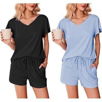 Ekouaer 2 Pack Women's Pajamas Set Soft Ruffle Sleeve Pjs Set Casual V Neck Lounge Set with Pockets