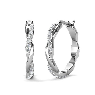 Cate & Chloe Lauren 18K White Gold Plated 22mm Twisted Hoop Earrings with Swarovski Crystals, Latch Back Hoop Earrings Gift for Women