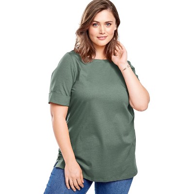 Woman Within Perfect Cuffed Elbow-Sleeve Boat-Neck Tee