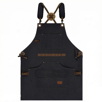 Alilang Canvas Work Apron with Multi Pocket Storage Adjustable Cross Back Straps Utility Apron