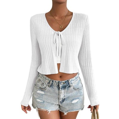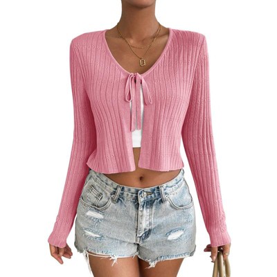 Women's Crochet Knit Open Front Cardigan with Long Sleeve - Sweater Shrugs for Fall Outerwear Outfits,Apricot - S
