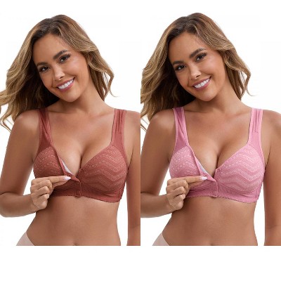 INSPIRE CHIC Women's Lace Front Closure Full Coverage Minimizers Wirefree Wide Straps Soft Bras 2 Packs