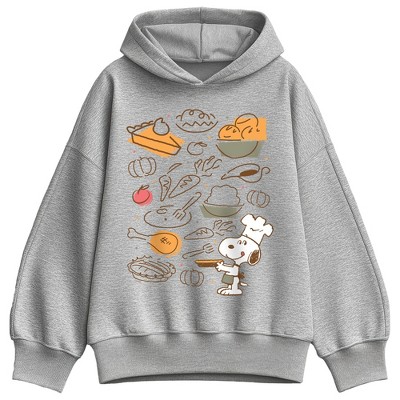 Women's - Peanuts - Snoopy Thanksgiving Food Oversized Fleece Hoodie Sweatshirt