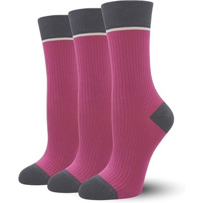 SERISIMPLE Women Viscose Bamboo Womens Crew Socks Dress Chic Colorblock Striped Design Socks 3 Pairs