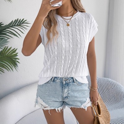 Womens Short Sleeve Sweater Casual Basic Crew Neck Loose Fit Knit Pullover Tops Spring Summer Lightweight Blouses