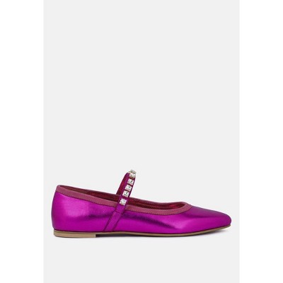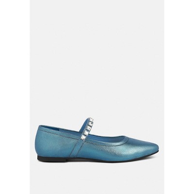 Alverno Metallic Diamante Mary Jane Leather Flats