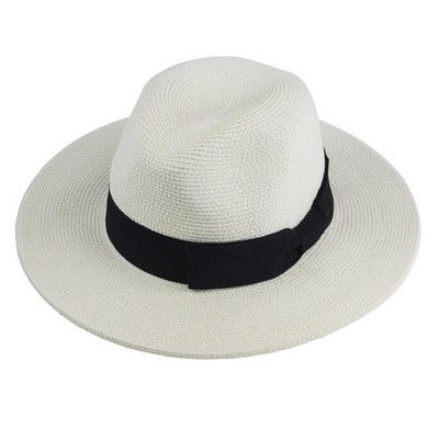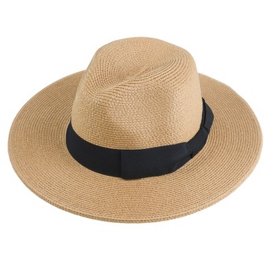 Anna-Kaci Womens Straw Boater Hat Wide Brim Summer Beach Hat Woven Band Flat Top Sun Hat