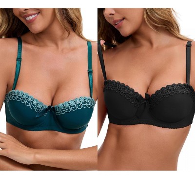 INSPIRE CHIC Women's Convertible Bra Half Cup French Underwire Maximizer Push Up Bow Decoration Lingerie 2 Packs