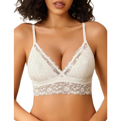 INSPIRE CHIC Women's Lace Plunge Wireless Everyday Back Closure Adjustable Spaghetti Straps Lightweight Triangle Bra