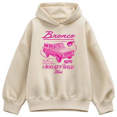 Women's Ford Pink 1970 Bronco Oversized Fleece Crew Sweatshirt - Cream - Small