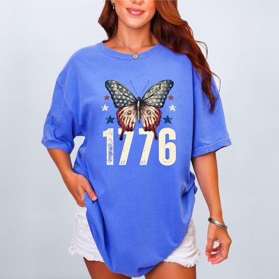 1776 Butterfly Patriotic - Women's Garment Dyed Graphic T-Shirt