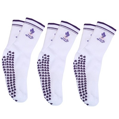 Anna-Kaci Women's Non Slip Grip Yoga Socks Cute Embroidered Crew Socks for Pilates Barre Dance Workout Breathable Athletic Socks 3 Pack