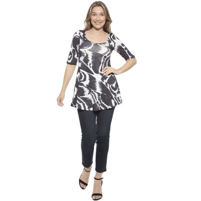 Womens Abstract Scoop Neck Elbow Sleeve Tunic Top - 24seven Comfort Apparel™