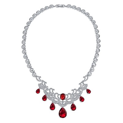 Guili Sterling Silver Rhodium-Plated Ruby Fancy Necklace in Green, Blue, or Red—Elegant, Stylish, and Perfect for Formal or Evening Wear.