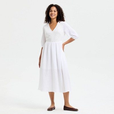 Women's Puff Elbow Sleeve Embroidered Midi Dress - Universal Thread™