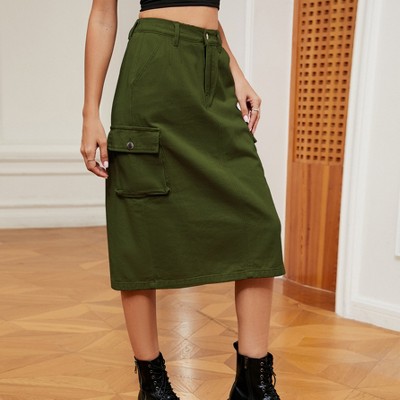 womens denim cargo midi skirt