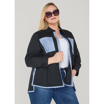 Women's Denim Print Paneled Hi Low Shirt - Ashley Stewart