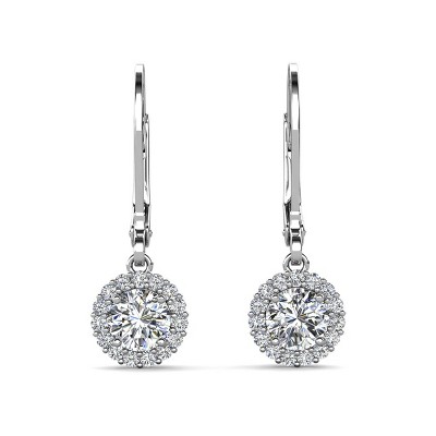 Cate & Chloe Ivy 18K Gold Plated Drop Dangle Earrings with Simulated Diamond Crystals, Halo Leverback Earrings Gift for Women