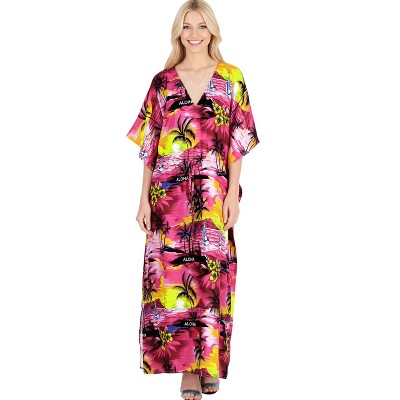 LA LEELA Women's House Daily Routine Evening Wear Loungewear Maxi Kaftan Casual Long Slit Dress Caftansuit Coverup for Women One Size Multi,Floral