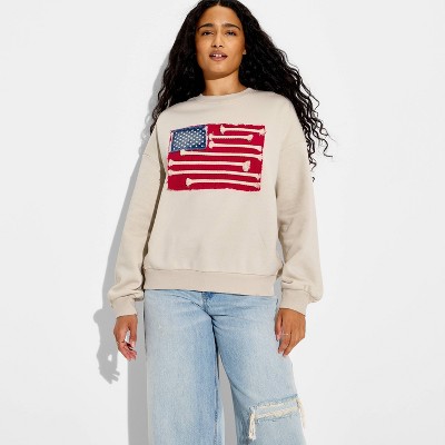Women's Doe Print Fleece Graphic Pullover Sweatshirt - Brown