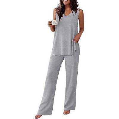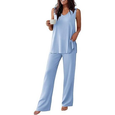 Ekouaer Womens Pajamas Set Sleeveless Lounge Sets Comfy Tank Top and Pants Pjs Set V Neck 2 Piece Sleepwear S-XXL