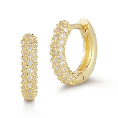 Sphera Milano Sterling Silver Front Pave Huggie Hoop Earrings