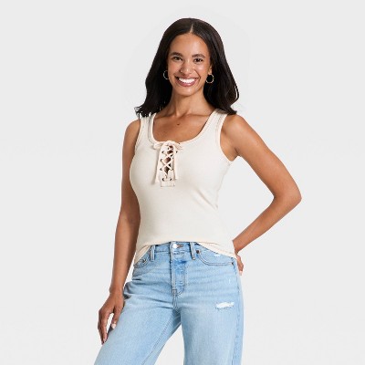 Women's Lace Up Rib Tank Top - Universal Thread™