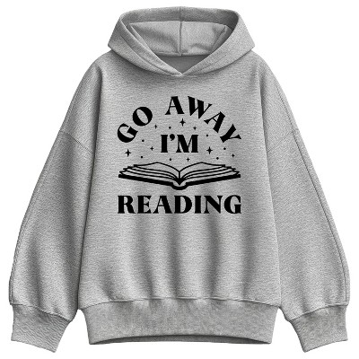 Women's Instant Message Go Away I'm Reading Oversized Fleece Hoodie Sweatshirt - Athletic Heather - Large