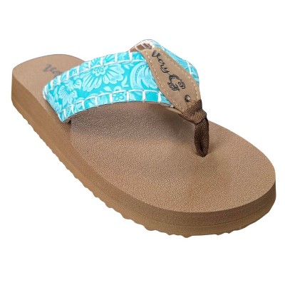 Very G Womens Pamela Western Floral Embossed Leather Strap Flip Flops - Turquoise