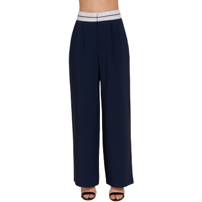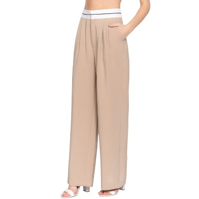 Slickblue Women's Straight Leg Pants with Contrast Waistband, Smooth Silhouette, Versatile Styling, Navy/Taupe, S-L